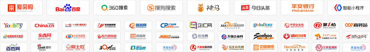 一比多 八方資源網(wǎng) K2商務網(wǎng) 首商網(wǎng) 無憂商務網(wǎng) 金屬期貨 蜘蛛客 第一槍 淘金地 萬國企業(yè)網(wǎng) 誠商在線 搜好貨網(wǎng) 供求信息網(wǎng) 如意寶建站 如意問答 最新商機 中國供應商 卓采匯 搜貨寶 100推 企業(yè)聯(lián)合網(wǎng) 領(lǐng)商網(wǎng)